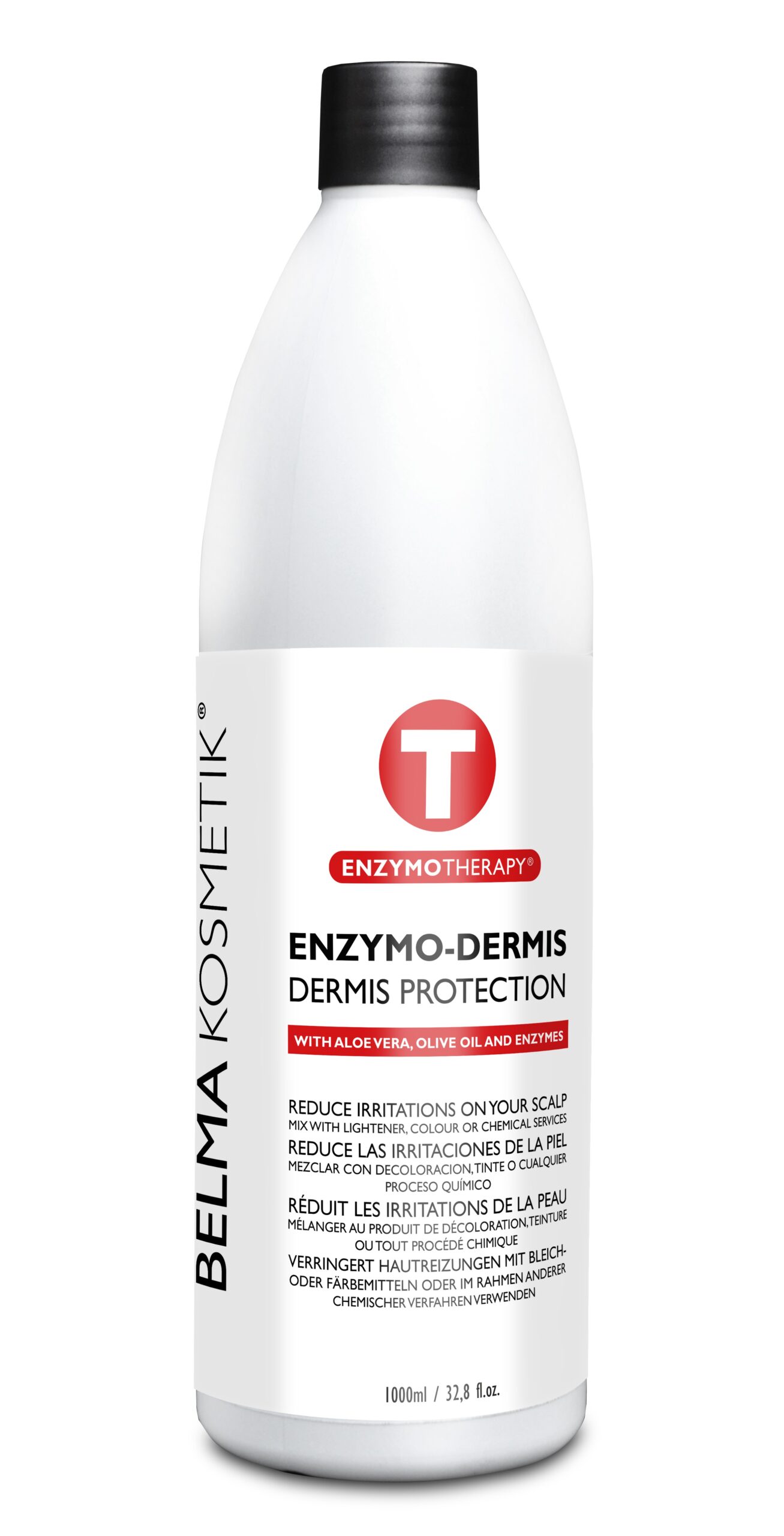 Direkt mit Färbe- oder Blondiermittel mischen. Produkt nach den Anweisungen des Herstellers mischen, dann Enzymo-Dermis im Verhältnis 1:6 zugeben.