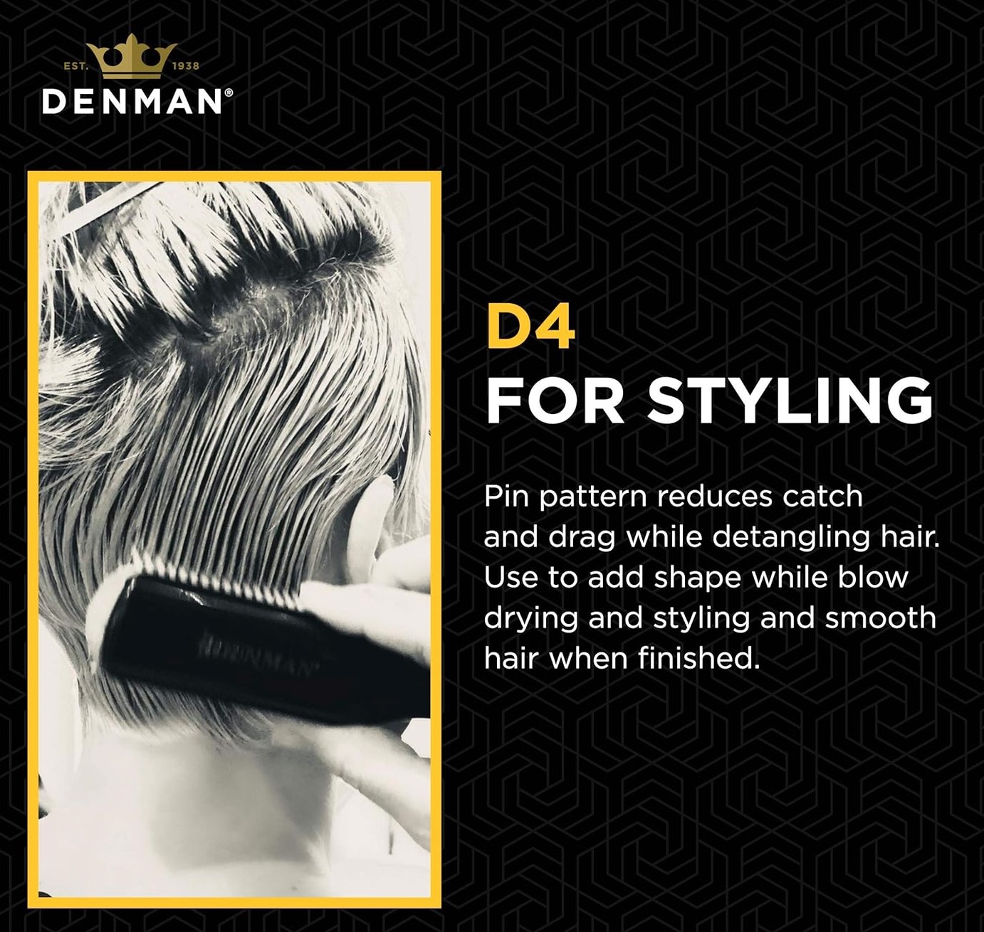 Denman D4 Original Styling Brush Black & White ist ein unverzichtbares Styling-Tool für professionelle Friseure. Diese multifunktionale Haarbürste ist perfekt für alle Techniken geeignet: zum Entwirren, Föhnen, Stylen, Definieren von Locken und Glätten der Haare.
